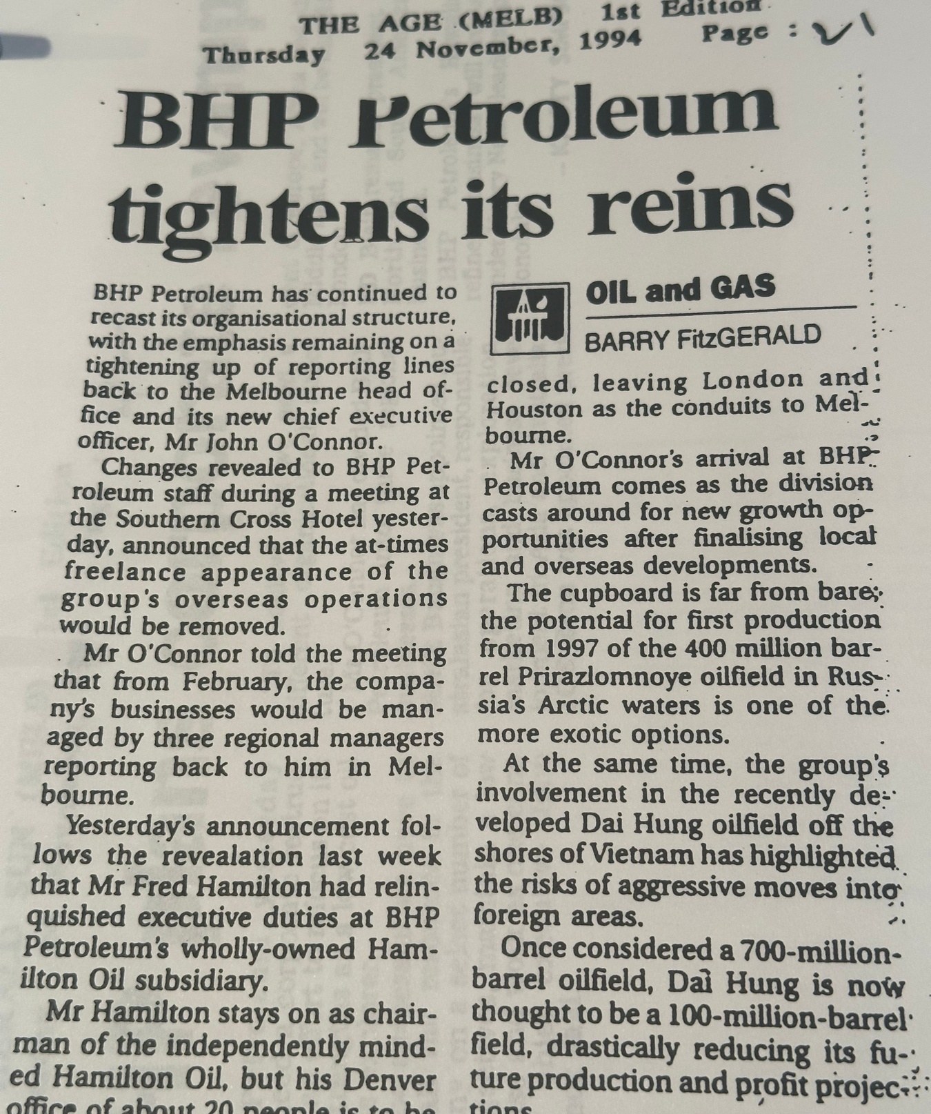 Another asset that came with Triton Energy was a 10% interest in a big BP-operated oilfield in Colombia, South America. I decided to ask BP to swap our equity in this asset for their interest in a large gas field in Malaysia. I went to London, met with John Browne and completed the swap. This turned out to be a very profitable transaction for us.