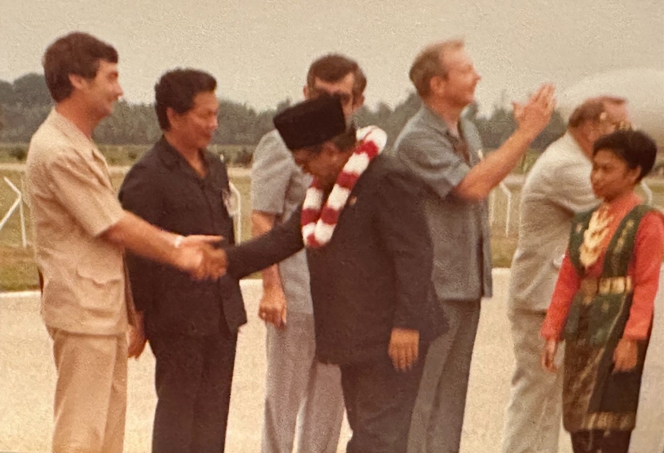While visiting the President of Equatorial Guinea, we were chatting with the President in the entry hall when John told him we had a present for him: a helicopter. The President asked, “How many people does it carry?” as John unwrapped his Hess Toy Helicopter, put it down on the marble floor and turned on its flashing lights! Oops—lost in translation.