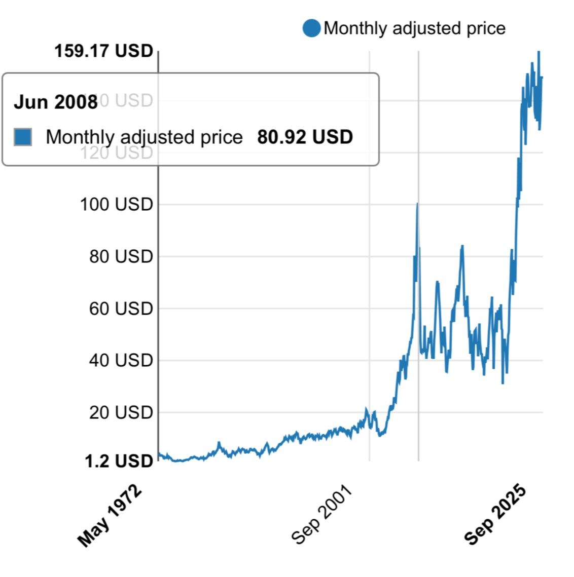 When I joined the company in October 2001 the share price was around $14, and by June 2008, the shares were trading around $80. So a lot of value had been created for a lot of people, not least, John Hess. But there was a lot more to come. Thanks to Hess holding a share in a successful exploration block in Guyana and with a solid, high-quality portfolio, the company was acquired in 2025 by Chevron at a share price of about $170.